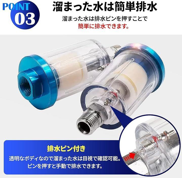 クリアなエアを供給 」 コンプレッサーからの圧縮空気に含まれる水分や油分を、ツール直前でしっかり分離・除去。