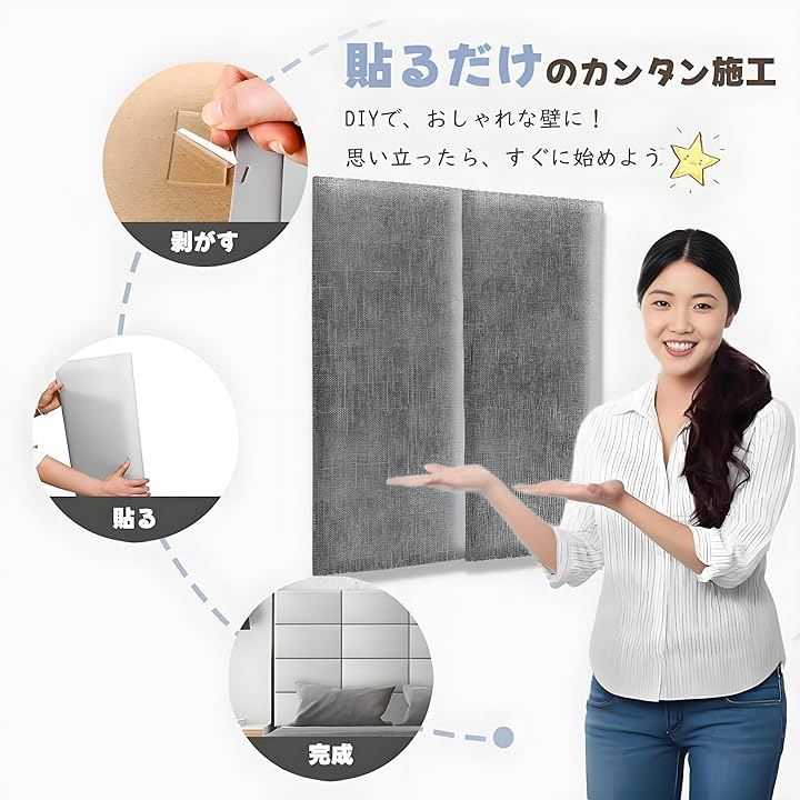 本製品は、お部屋の印象を変える壁クッションとして、貼るだけで簡単に設置が可能です。