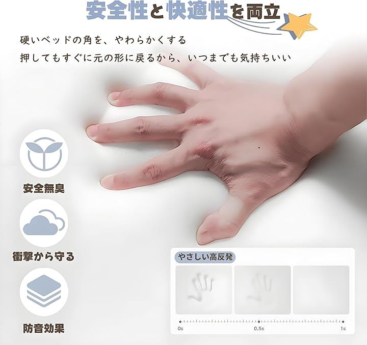 「衝撃吸収」厚みのあるクッション層が、ベッドや壁との接触時の衝撃を効果的に吸収します。
