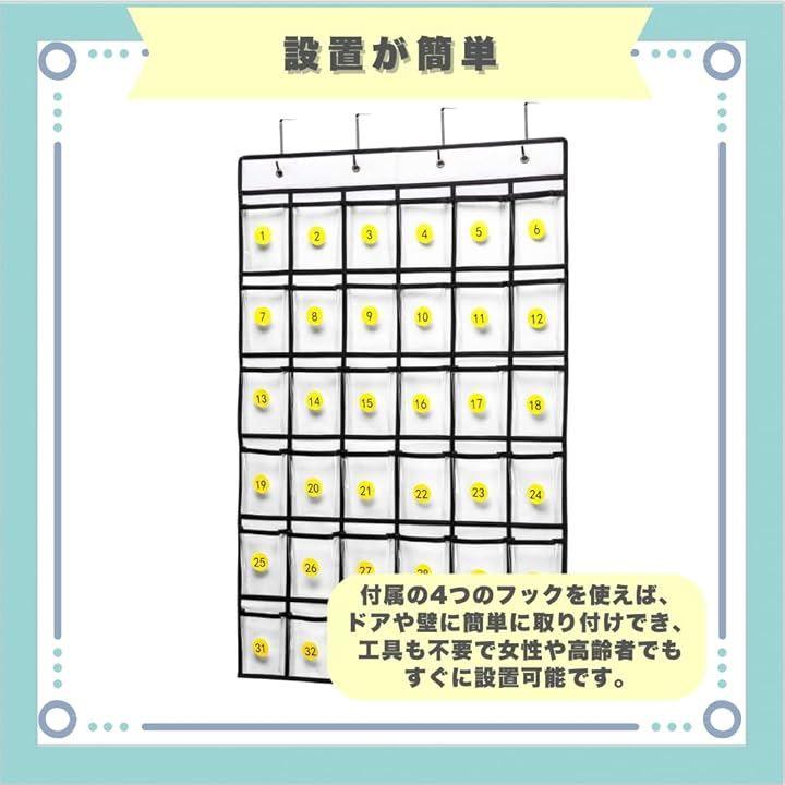 ウォールポケット お薬カレンダー ベッドサイド 壁掛け 透明 36フレーム フック付き