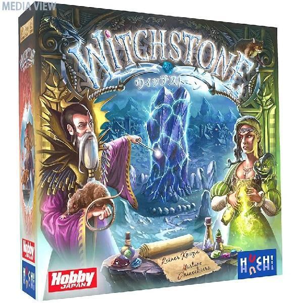 ホビージャパン ウィッチストーン 日本語版 プレイヤーはギルドの博学な熟練魔法使いとして古代の聖なる石の周りに集まっています。大釜にダブルへクスのタイルを配置して魔法の呪文を作ることでアクションを行い、ウィッチストーン周囲の魔力のつながりを拡大し、配下の魔女たちを送り込み、大釜から魔法の水晶をすくい上げ、五芒陣や魔法の杖を活用しましょう。勝利を確かなものとするために、予言にも目を配るのを忘れないでください。常にすべての選択肢を利用できるとは限らないので、好機を逃さないようにしましょう。「ウィッチストーン」はパズル配置でのアクション選択とコンボが楽しく、様々な得点手段で毎回展開が異なる、やりごたえのあるファンタジーテーマのゲームです。プレイ人数:2~4人用対象年齢:12歳以上プレイ時間:60-90分