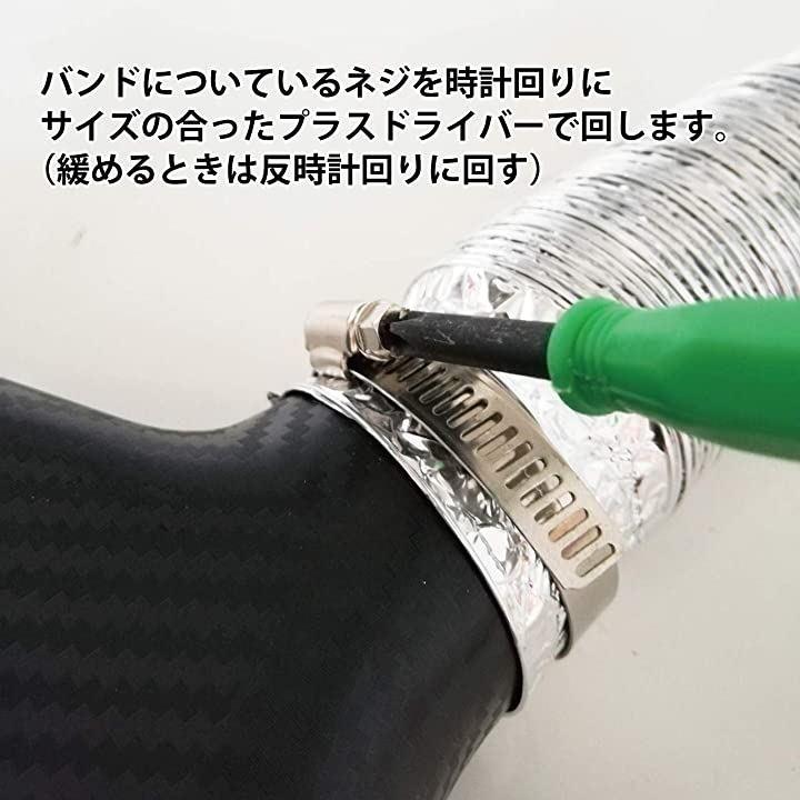 取付は吸気口をセットし、冷却したい場所までダクトの位置を調整したら、可変バンドでダクトと吸気口をしっかり取り付けて完成。