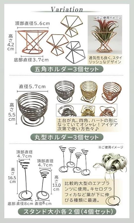「お好みで選べる、おしゃれなデザイン」五角形、丸型ホルダーはさかさまにしても小さなエアプランツを飾れます。
