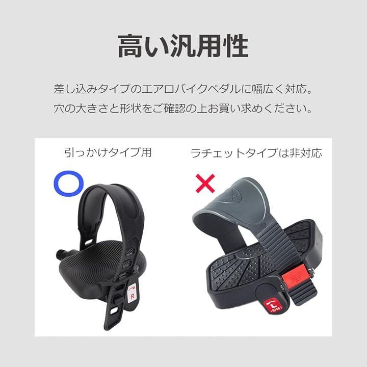 「高い汎用性」差し込みタイプのエアロバイクペダルに幅広く対応。