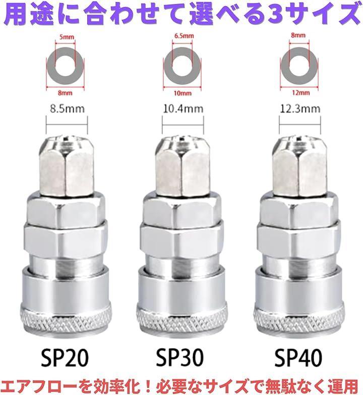 ・SP PP20は外径8ミリ内径5~5.5ミリのホースに対応 ・SP PP30は外径10ミリ内径6.5ミリのホースに対応 ・SP PP40は外径12ミリ内径8ミリのホースに対応 用途に合わせて選ぶことで無駄なコストを抑え、効率的な作業が期待できます。