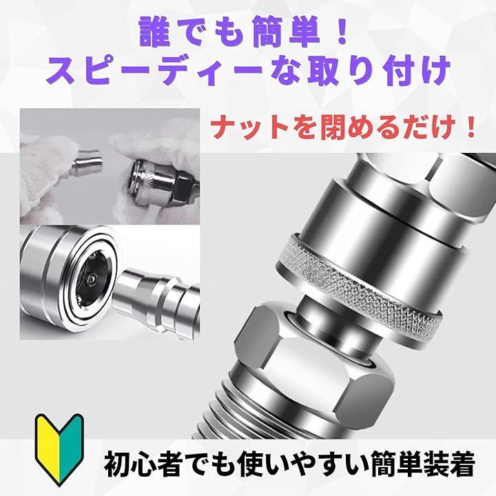 「1. 高品質で信頼性のある設計」 このエアーカプラーは、1.32MPaの高い使用圧力に対応し、空気工具やエア配管など多用途で活躍します。