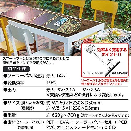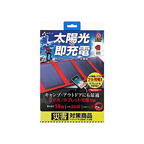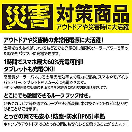 通常1-5営業日で発送:USBポート2ヶ付き ポータブルソーラー充電器(充電用ケーブル別売) 【特徴】 ●太陽光さえあればいつでもどこでも充電できる、2台同時接続可能なポータブルタイプのUSBポート2ヶ付きソーラー充電器です。 ●約2時間でスマホをフル充電可能!最大出力14Wでのパワフル充電を実現!! ※iPhone8使用時。日照条件や環境によりフル充電できない場合があります。 ●お手持ちのUSBケーブルを利用して、An ...