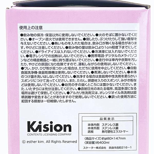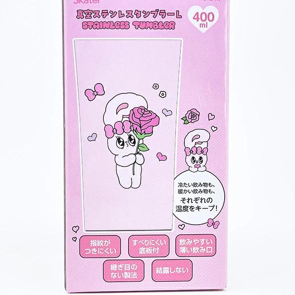 エスターバニーのステンレスタンブラーです。温かい飲み物&冷たい飲み物もOK◎ 結露もしにくいため、テーブルを汚しません♪ ピンク一色でとってもキュートなデザイン! 箱に入っているため、プレセントにもおすすめです♪【※電子レンジ・食洗機 使用不可!【商品サイズ:約φ80×14.7センチ】【実用量:約400ミリリットル】