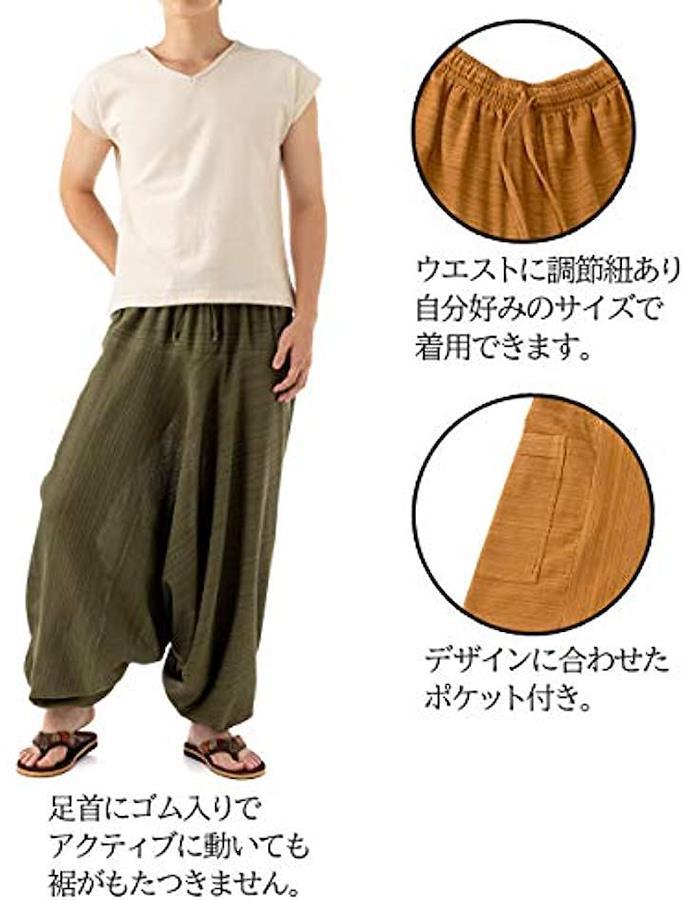 ・股上にゆとりがあるサルエルシルエットで、足首にゴムを入れ動きやすくデザインしました。