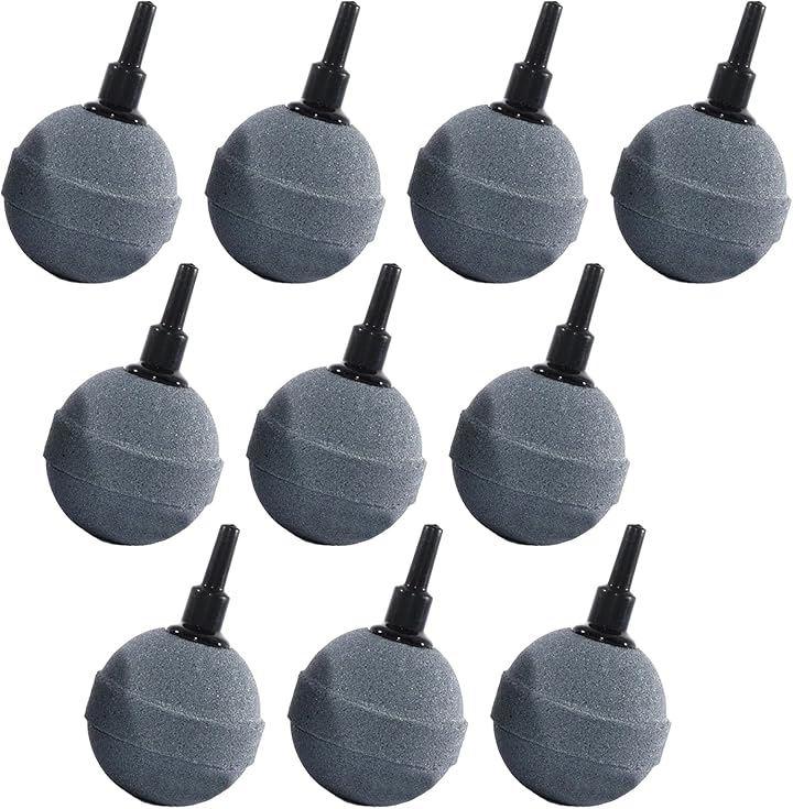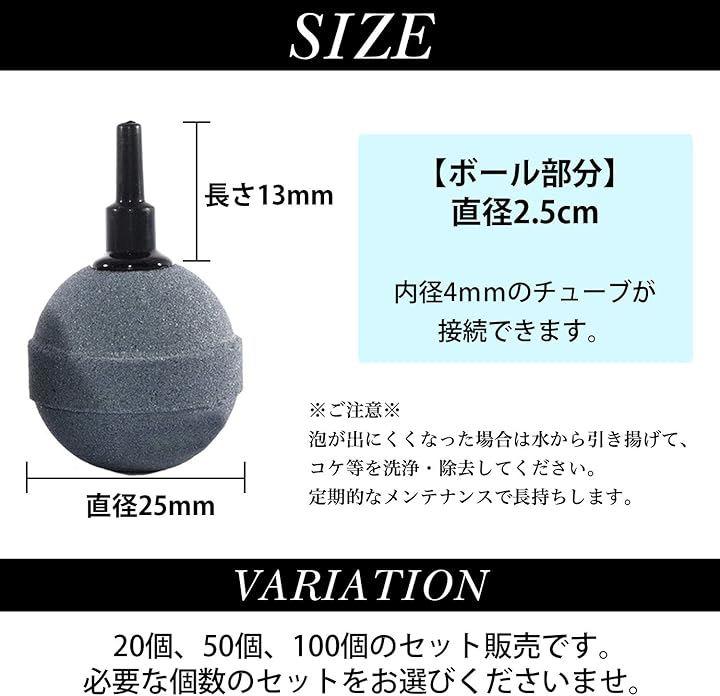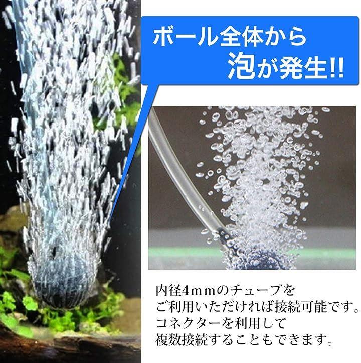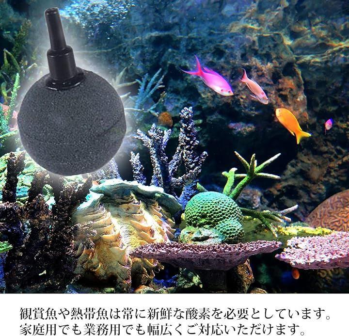 水槽用のエアーストーン丸型セットは直径2.5cmの丸いボール形状で、水中で均等に美しい気泡を作り出します。