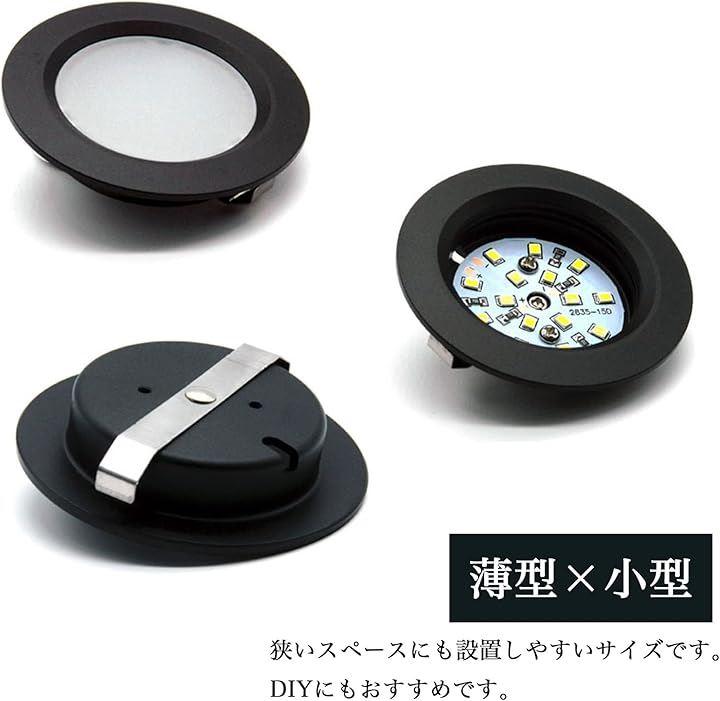 エスネット DC 12V 3W 小型 LED ダウン ライト ホワイト 黒枠 6500K 組立必要 外寸 68mm 厚さ 14mm ケーブル 2m