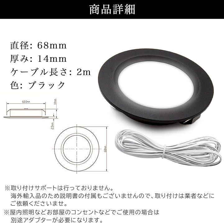 「商品情報」明るさ:6500K 直径: 68mm 厚み: 14mm ケーブル長さ: 2m 色: ホワイト