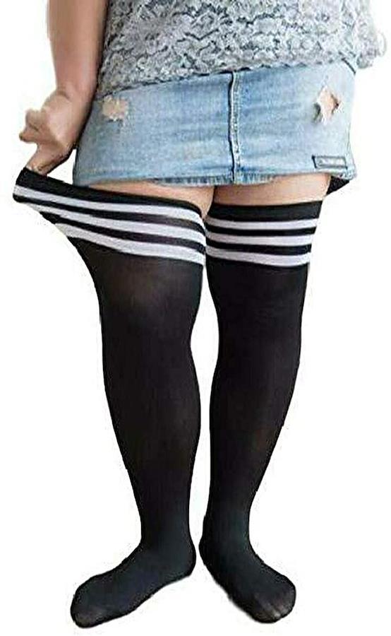 ・膝上までの靴下はスカートやショートパンツとの相性抜群*大きいサイズの女性の方におススメ*ビッグサイズのニーハイソックスです!!