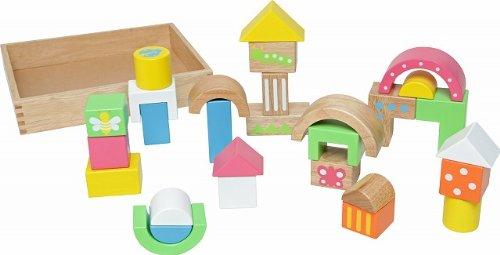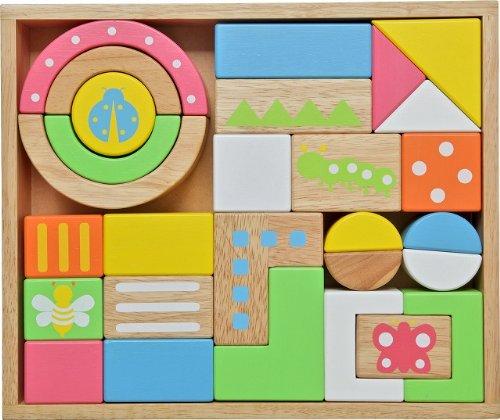 サイズ:W26.5×D31.5×W5.7cm 材質:木製(ゴムの木・MDF) 対象年齢:0歳(10ヶ月)/1歳/2歳~ セット内容:木箱×1、積み木28ピース