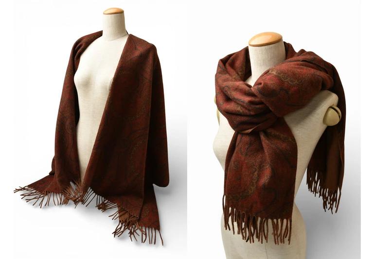 商品説明エトロ マフラー ETRO ヴィンテージ ウインタースカーフ カシミヤ100% ペイズリー柄 ブラウン