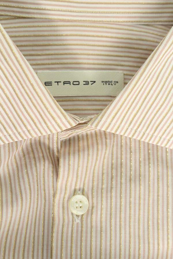 エトロ ETRO <br>サイズ:37 金糸ストライプ長袖シャツ(ピンク)【030152】【BS99】【メンズ】【中古】bb51#rinkan*B