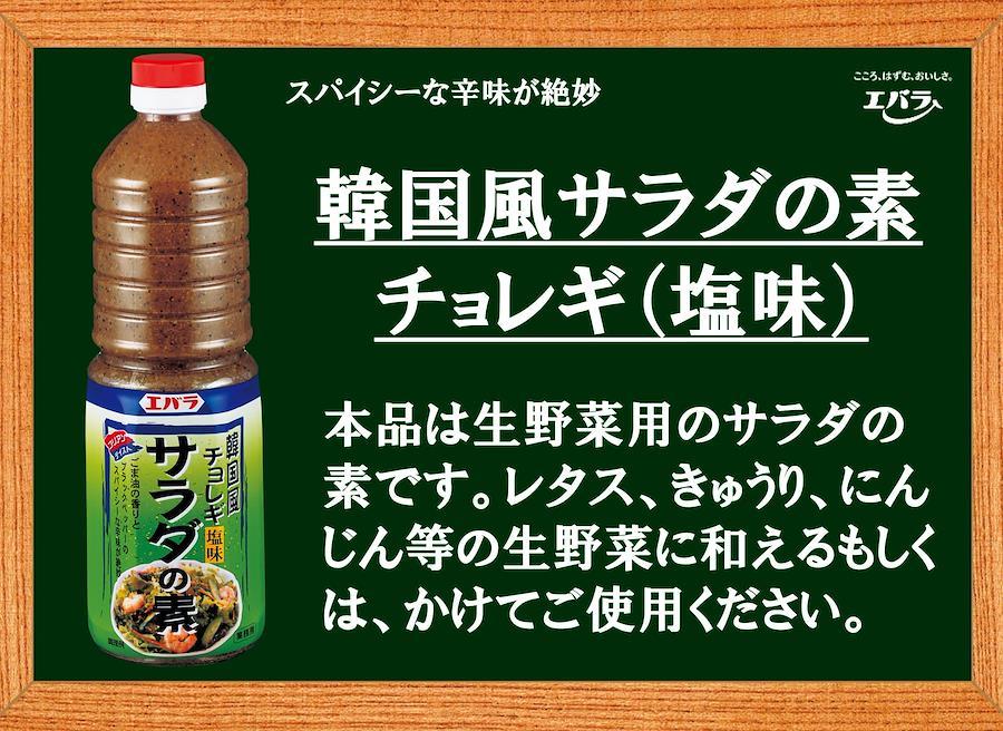 ?【チョレギサラダあっさり塩味】香るごま! あっさり塩味。香り豊かなごま油に、長ねぎとにんにくの風味と黒こしょうを効かせたあっさり塩味のサラダ調味料です。また焼肉という食シーンに良く合う味のチョレギサラダドレッシングです。生野菜をちぎってエビ・ほたて・ワカメなど魚介・海藻類を一緒にあえて魚介サラダが作れます。?【韓国風サラダの素】ごま油の香りとブラックペッパーのスパイシーな辛味が絶妙「チョレギ」とは、「ちぎった生野菜のサラダ」を意味します。本品は生野菜用のサラダ調味料です。レタス、きゅうり、人参等の生野菜に和えるもしくは、かけてご使用ください。その他にも「炒める」、「焼く」等色々な応用メニューにお使いいただける優れたチョレギサラダドレッシングです。?【大容量サイズ】嬉しい大容量サイズのチョレギサラダドレッシングなので、量を気にせずしっかり使えます。2本セットもご用意。ドレッシングを切らす心配がありません。?【サラダ以外にも】サラダ以外にもカルパッチョや冷奴など万能だれとしても大活躍です。お肉料理のサイドメニューとしてぴったりの味付け!【重要】メーカーによる商品リニューアルに伴いパッケージ(内容量も含む)変更が行われた場合、新パッケージでお届け致します事ご了承願います。