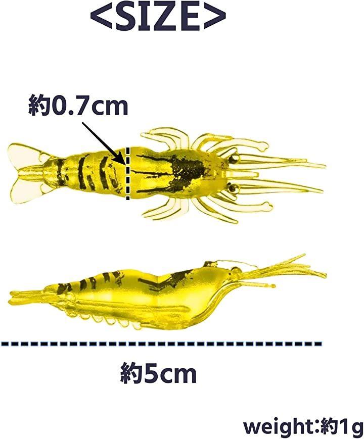 サイズも動きも小さいエビにそっくりだから様々なターゲットをカバー。 海や河川、湖などあらゆる場所で大活躍するエビのソフトワームです。