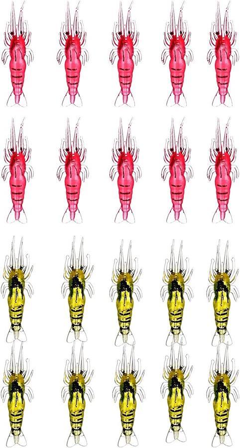 エビワームは2色の20個セット。 2色あるから場所や時間帯、天候などの変化に応じて、色を使い分けることが出来るからとても重宝します。 針なしワームだから自分で好きな針を取り付け出来るの魅力的。