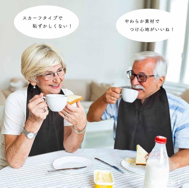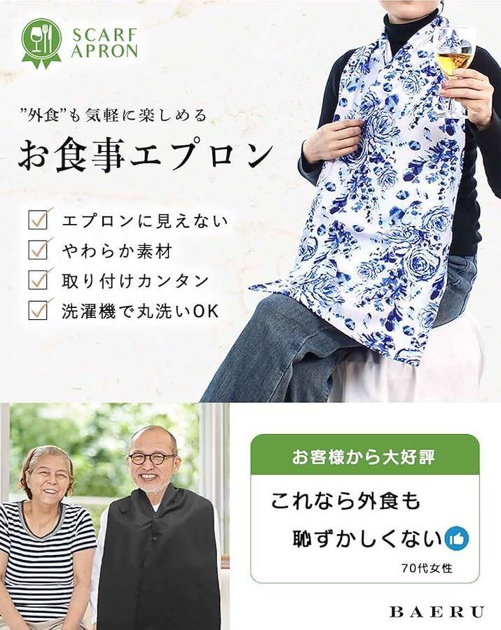 「ストールみたいな食事用エプロン」食べこぼしを気にせず食事を楽しむことができます。