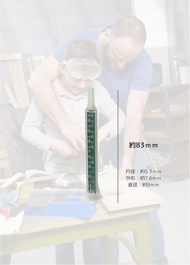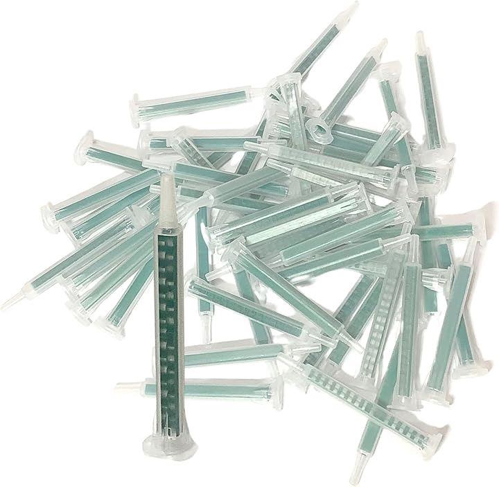 ノズル仕様:混合比:1:1、2:1; カラー:グリーン、全体長さ:83 mm、接着剤出口内径:1.5mm、チューブサイズ:7.6 x 7.6mm(WxH)、セクション数量:16; 10 x ミキシングノズル。