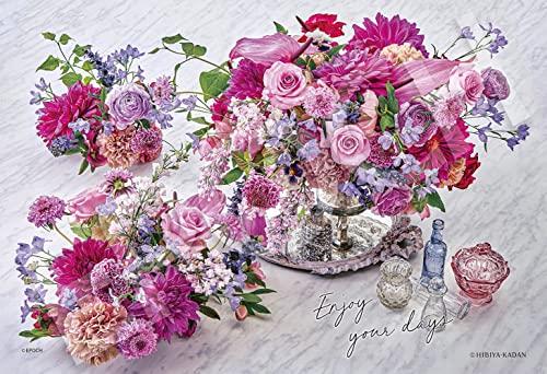 ピンクのダリヤとパープルのバラを中心に、エレガントで美しいアレンジをお楽しみいただけるジグソーパズルです。