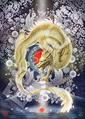 黄金の龍は、繁栄をもたらす非常に縁起の良い龍と伝えられています。龍が手にする「如意宝珠(にょいほうじゅ)」は「意のままに」という意味を持つ「如意」と、宝物を意味する「宝珠」を組み合わせた言葉で、人々の願いを叶え邪気を祓うと言われています。龍が如意宝珠を掴み取り天に昇ろうとする姿を描いたこの作品は、幸運を掴み取る、運気上昇、開運、金運向上を表しています。吉祥動物を描きこんだ縁起の良いモチーフを描いたシリーズです。