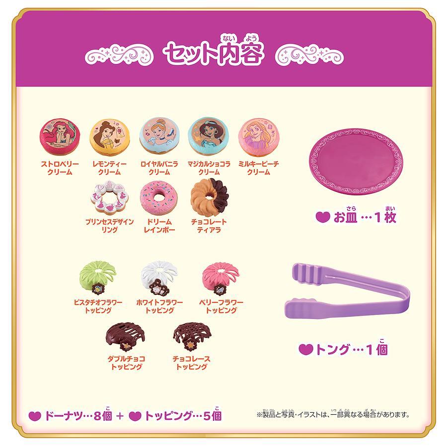 ドーナツには、プリンセス達をイメージしたかわいい彩色を施しており、また、プリンセス達が描かれたチョコレートのついたトッピングパーツで、ドーナツのタワーを、さらにかわいくデコレーションできます。