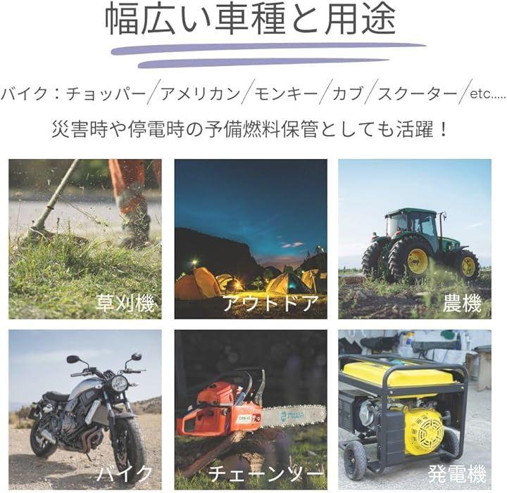 「万が一の備えに最適」ガソリンを1.0Lまで携行できるため、ロングツーリングや山道でのガス欠対策に有効。