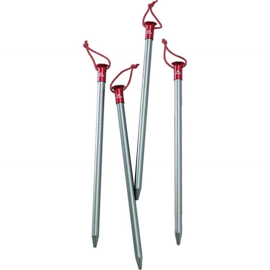 軽さと強度を兼ね備え、硬い地面にも使用できるおう設計した中空アルミのステイクです。6インチ(約15cm)と9インチ(約23cm)の2種類があります。