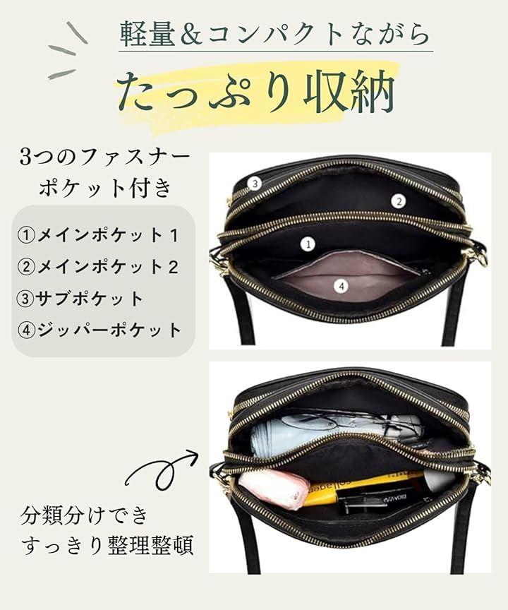 「コンパクトながら抜群の収納力」 小ぶりなサイズながら、3つのファスナーポケット付きで収納力抜群。