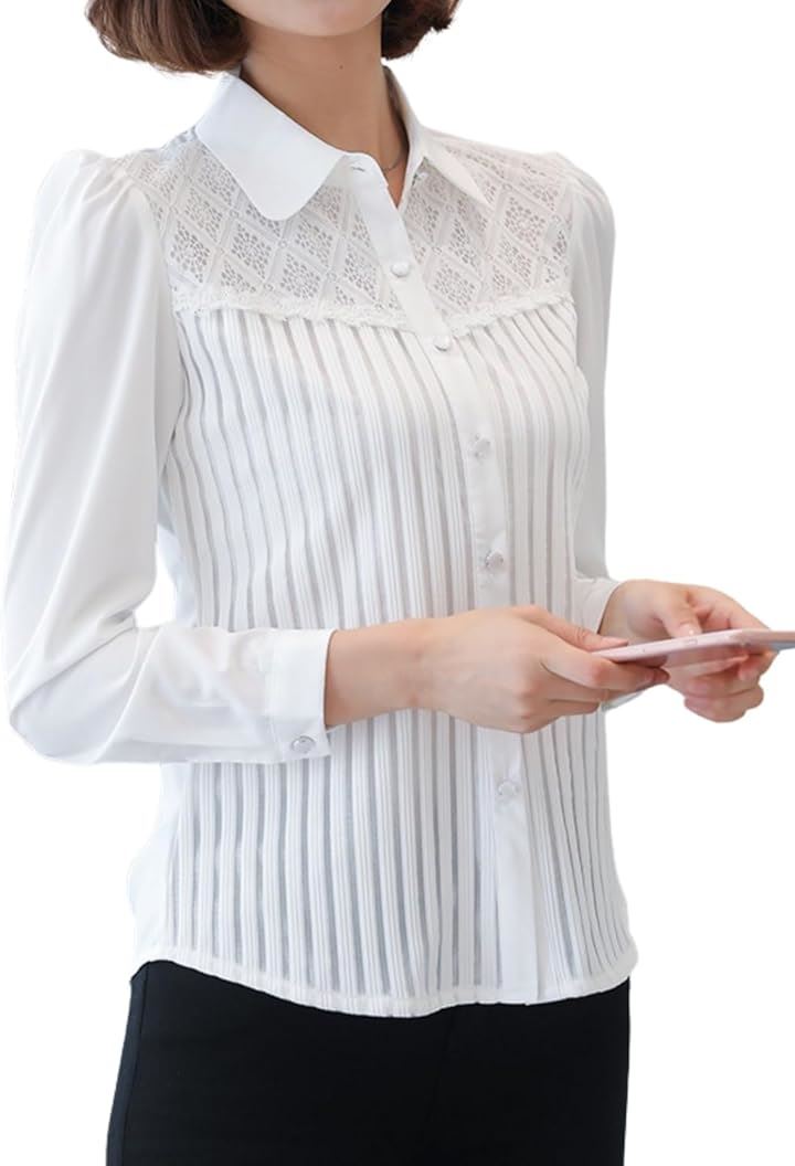 「大人可愛く、きちんと」レースのディテールとパフスリーブのデザインが女性らしさを引き立てます。
