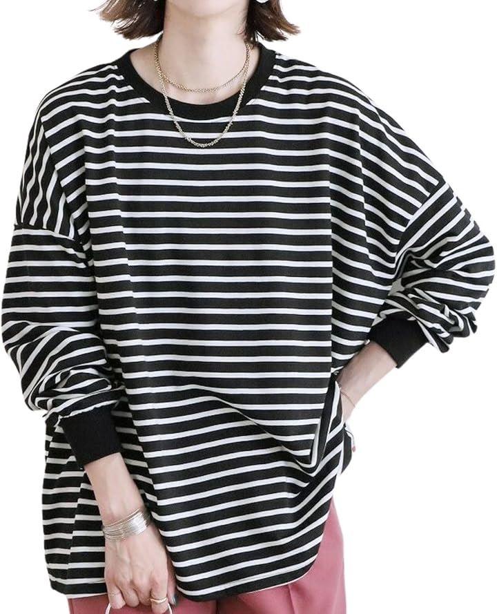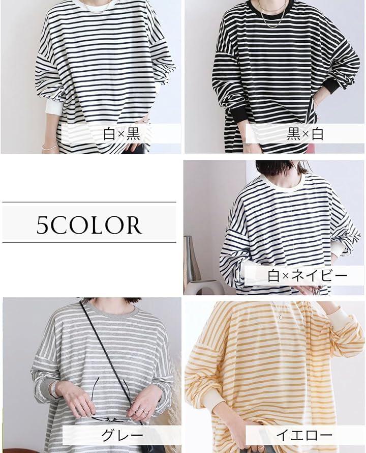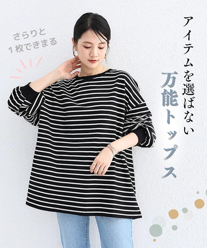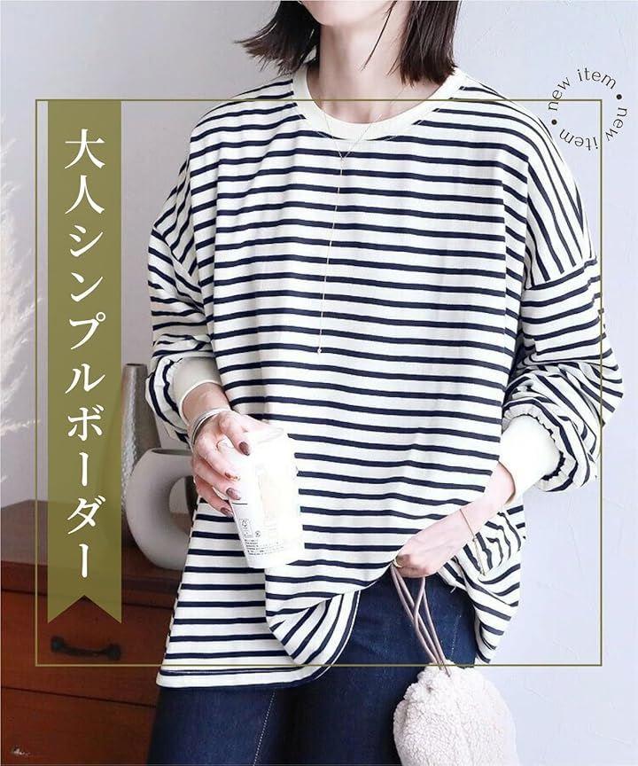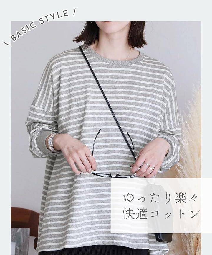 「商品説明」おしゃれで快適なカットソー、長袖ボーダーTシャツをご紹介します。