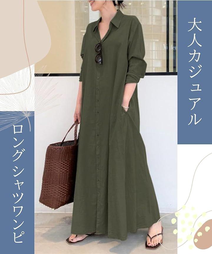 前開きのボタンをはずせば羽織りとしても着用できますので、春ワンピース・秋ワンピースはもちろん、UV対策冷房対策の必要な夏まで、ロングシーズンご着用ください。
