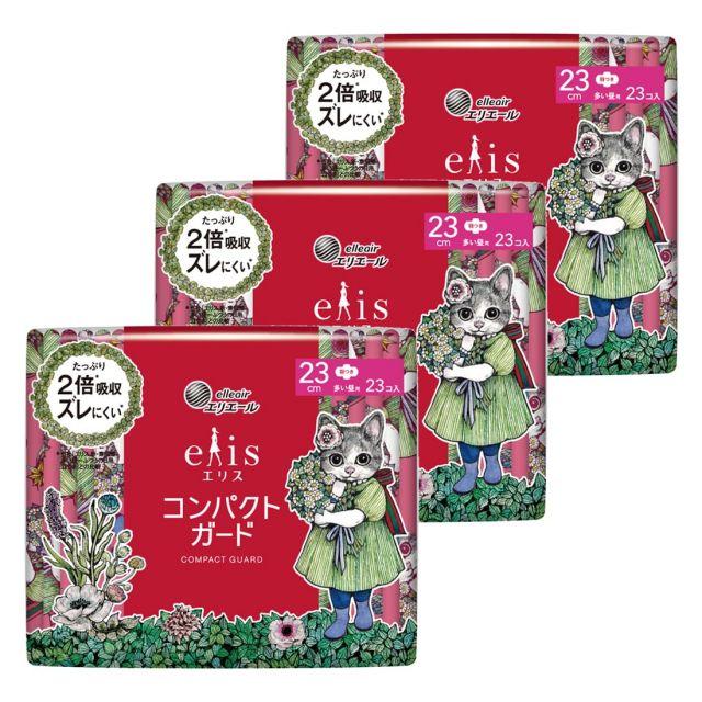 エリス コンパクトガード ≪ヒグチユウコ企画品≫ 羽つき 23cm 69枚(23枚×3個) 多い昼用 ナプキン まとめ買い