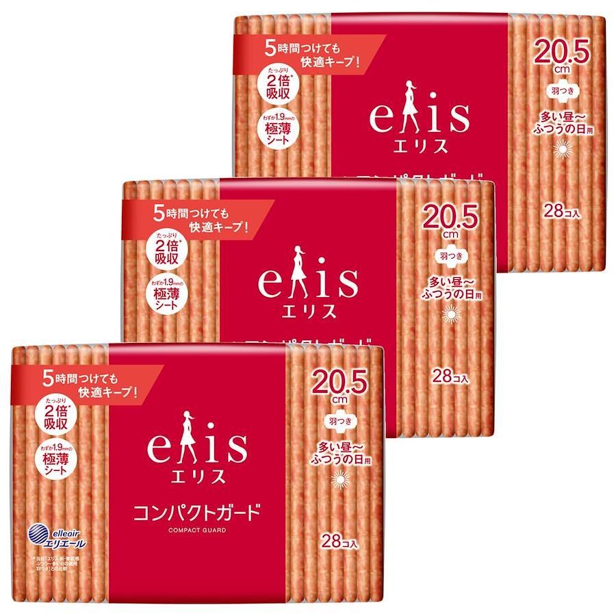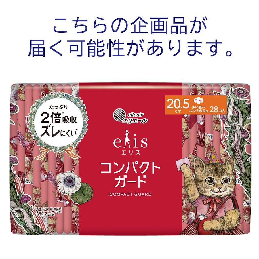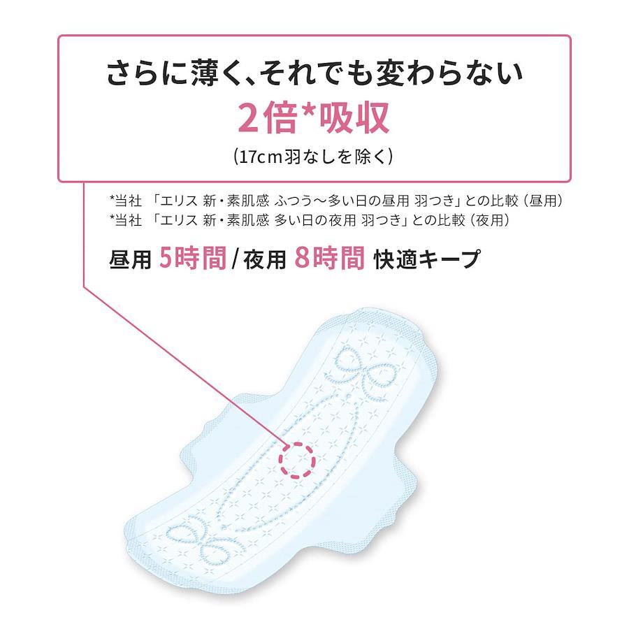 今日もエリスが、そばにいます。 5時間つけても快適キープ。べたつきにくい。 極薄シートでもしっかり吸収。 個包装もスリムで持ち運び時もコンパクト。 動いてもしっかり固定。 異なるパッケージが届く可能性があります。