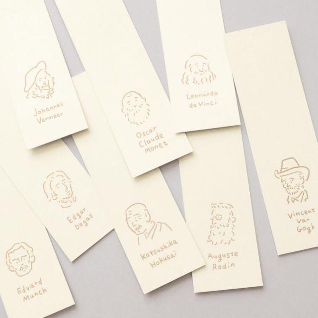 【その他】文庫本サイズのブックカバー。表紙には誰もが知っている有名な美術作品をラフなタッチでアレンジで。付属のしおりにはそれぞれの作者が描かれています。幅105mmx縦157mmx厚み25mmまでの文庫本に対応しています。