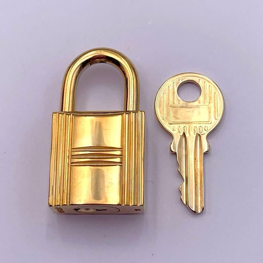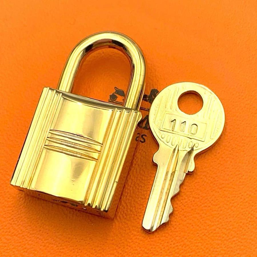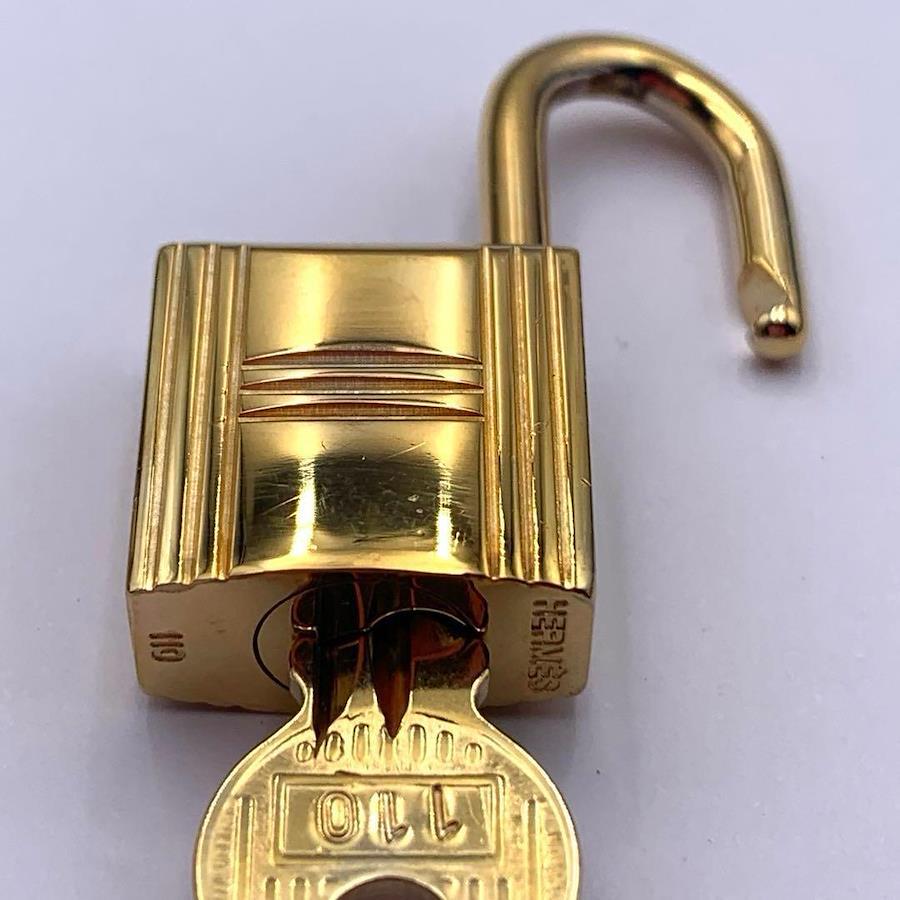 HERMES エルメス カデナ 24Kメッキ No.110 110番 鍵付き カデナキー パドロック チャーム アクセサリー 南京錠 鍵 カギ かぎ Cadena Key Padlock