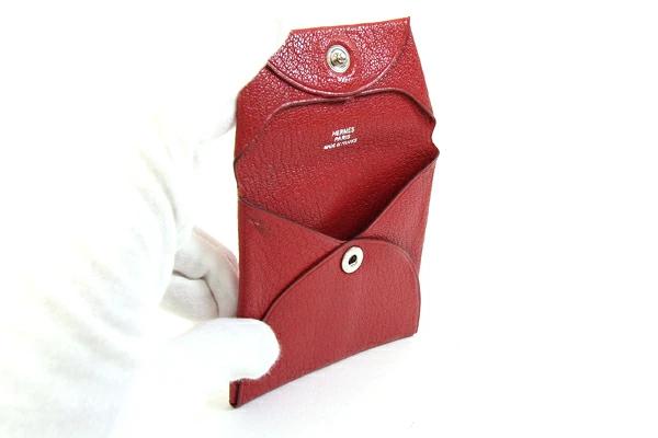 エルメス コインケース バスティア ルージュ シェーブル □J刻印 2006年製造 中古 小銭入れ ミニ財布 スクエア レッド レディース HERMES