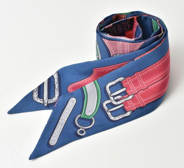 HERMES シルクツイル ベルトモチーフ ブルーマルチ