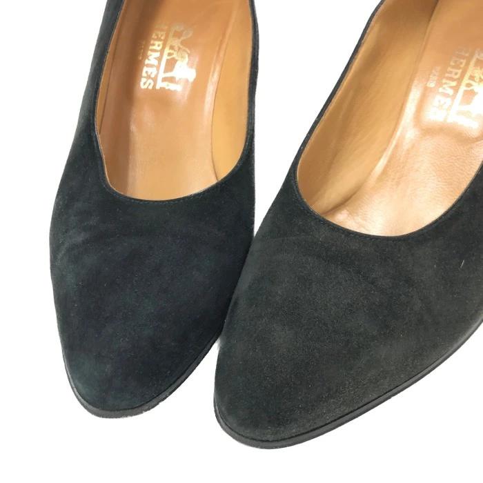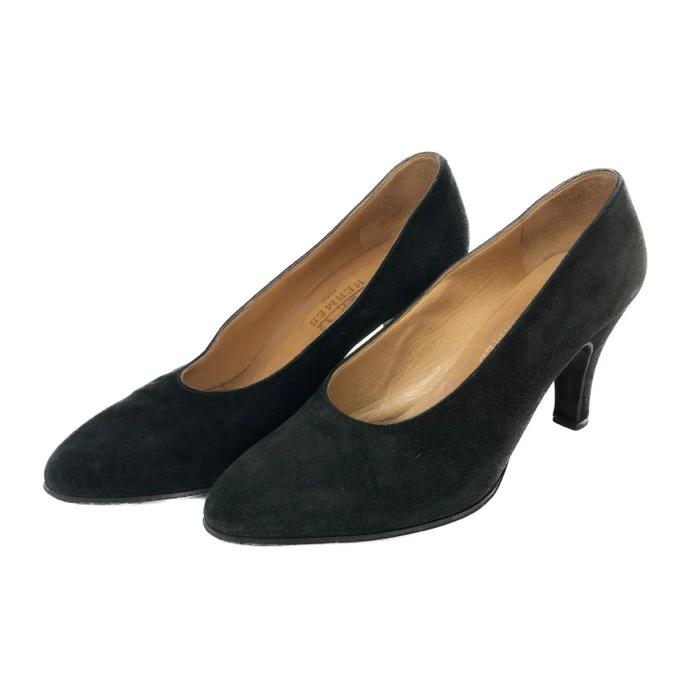 【管理番号】 015299s【ブランド名】 HERMESエルメス【アイテム】 パンプス アーモンドトゥ【サイズ】表記 34 1/2(22cm相当) ヒール約:7.5cm【色・柄】 ブラック【素材】 スエード【付属品】【外観ランク】ABランク【内観ランク】【商品補足説明】 スエード、アウトソール、トップリフトに擦れあり。