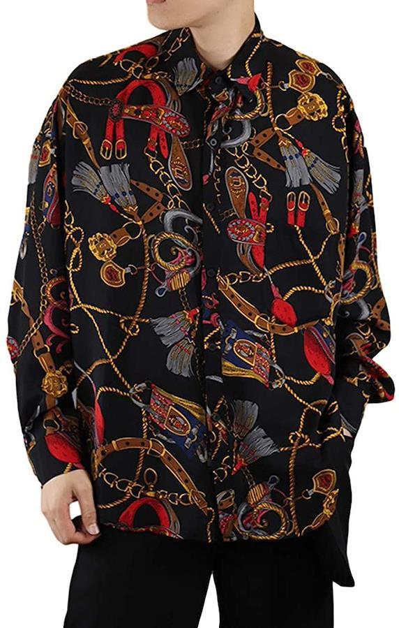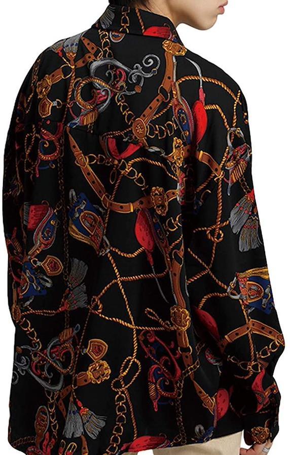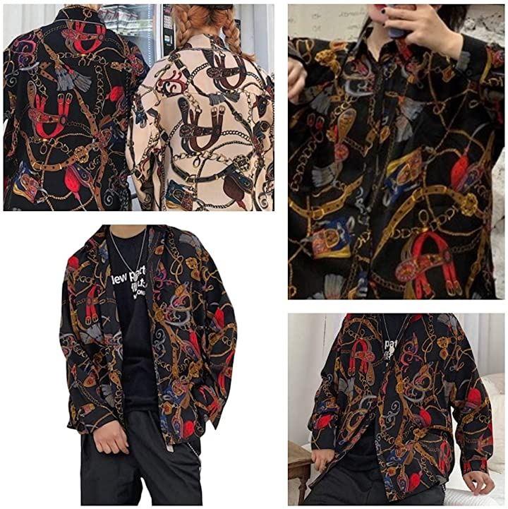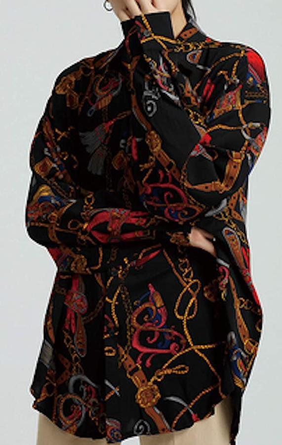 ・「デザイン」・大胆にプリントされたチェーン柄・トレンドのドロップショルダー(肩落ち)デザイン・身幅、肩幅にたっぷりと余裕を持たせたドロップショルダーで、ざっくりとしたサイズ感が魅力・ゆったりとしたルーズシルエットですが、上品な着こなしを演出する絶妙なゆるさ