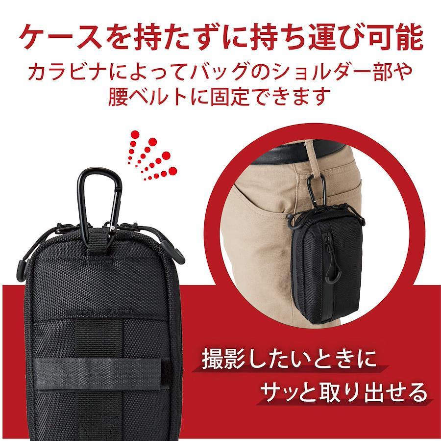詳しくは「商品の仕様」「商品の説明」をご確認ください。1気室タイプのデジタルカメラケースLサイズ“GRAPH GEAR”モデルですコンパクトデジタルカメラが収納できる大型サイズです。前面ポケットにSDカードや予備バッテリーが収納できます。ベルトループ&面ファスナー&カラビナによってバッグのショルダー部や腰ベルトに固定でき、ケースを持たなくても持ち運びができます。自身のカメラを取り出しやすい箇所にケースを装着できることで、撮影したい時にカメラが取り出せます。