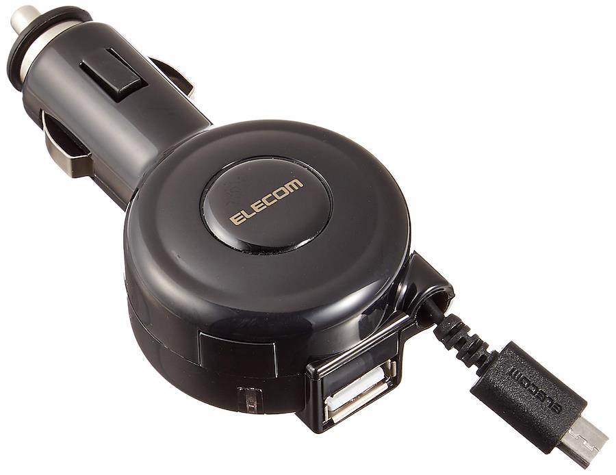 3営業日以内に発送≪新品未開封品≫:■自動車のアクセサリソケットからmicroUSBコネクタまたはUSBポートを介して充電できるタブレットやその他機器に対応した車載充電器です。 ■microUSBコネクタとUSBポートを搭載していますので、対応機種であれば2台同時充電が可能です。(合計最大出力2.4Aまで) ■約65cmの巻き取り式ケーブルで取り回しがしやすく、すっきりと収納できます。 ■12V/24V入力に対応し、普通車はもちろん、トラックなどの大型車でもご使用になれます。 ■電源が入ると青く点灯する通電確認LEDランプ付きです。 ■同軸ケーブルを採用していますので、屈曲による内部摩擦に強く、ショートを起こしにくくなっています。