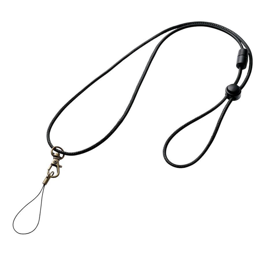 ●首に装着してスマートフォンの落下を防ぐ、ネックストラップです。●装着時にスッキリ目立たないレザー調細紐タイプです。●ワンタッチで簡単にスマートフォンの着脱が可能です。●事故防止のため、強い力が加わるとストラップが分離する安全パーツを使用しています。●ストラップの長さは最長約50cmです。スライドを調整することでお好みの長さに調節することが可能です。●耐荷重は200gまでです。※耐荷重を超えて使用しないでください。