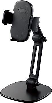 【仕様】■材質:ABS+ポリカーボネート、ナイロン+ガラス繊維、シリコン■外形寸法:幅約135mm×奥行約135mm×高さ約300mm■重量:約410g■カラー:ブラック■対応機種:およそ4.6~6.9インチのスマートフォン■角度調節:○【説明】■スマートフォンの取り外しがワンタッチで素早くできるスマートフォン用卓上スタンドです。■片手でスマートフォンが手に取れるワンプッシュボタンを搭載しています。■※ホルダーを横にした状態でスマートフォンを取り外すと、落下する恐れがあるのでご注意ください。■アームは3カ所のネジで角度を変えられ、スマートフォンとの距離や高さを好きな位置に調整できます。■スマ