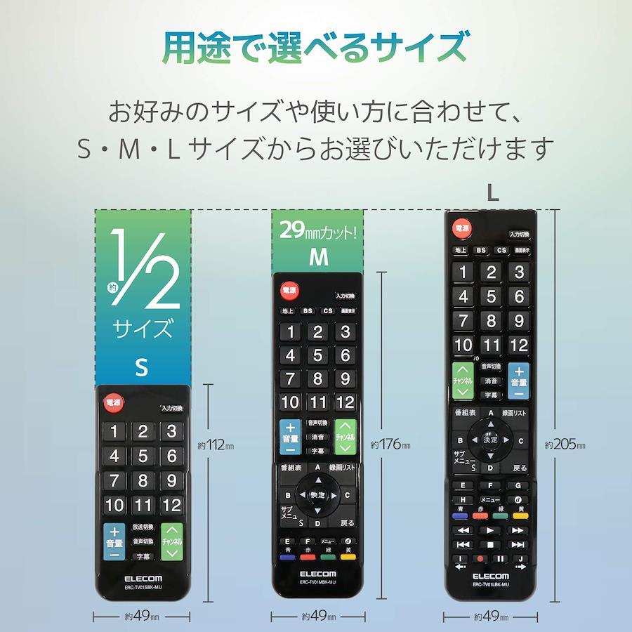 3営業日以内に発送≪新品未開封品≫:■録画やメニューなどのボタンを排除し、地デジ・BS・CSの操作に特化させることで、ご年配の方や小さなお子様でも使いやすいSサイズの12メーカー対応マルチテレビリモコンです。■設定番号を入力するだけですぐに使えます。■病院やホテルなどの操作を制限したい場所でも使いやすいリモコンです。■握りやすさを追求し、メニューや録画機能操作ボタンを省くことで、誤操作を完全に防ぎます。■シャープ、パナソニック、東芝、ソニー、三菱、日立、LG、ハイセンス、フナイ、アズマ、オリオン、アイワの12メーカーに対応しています。■※本製品は2018年12月までに発売された機器をもとに開発を行っておりますが、一部のテレビでは使用できない、または一部機能が操作できない場合があります。■※本製品の機能がテレビおよび付属リモコンにない場合、その機能は操作できません。またテレビおよび付属リモコンにある機能が本製品にない場合も、その機能は操作できません。■地デジ・BS・CS・一部ブルーレイディスク内蔵テレビに対応しています。■リモコン操作時に多い3つの使い方(つまんで操作、握って操作、置いたまま操作)に対応しています。■電源ボタンなど、リモコンをつまんで操作するときには、側面のくぼみに指を引っ掛けることができ、快適に操作可能です。■チャンネルの操作など、リモコンを握って操作するときには、背面のくぼみが人さし指にフィットしリモコンを支えることで快適に操作可能です。■音量調節など、リモコンを置いたまま操作するときも自然と指になじむボタン形状で、快適に操作可能です。■ボタンには押し心地の良いメタルドームを採用し、ボタンを押したときに抜群のクリック感を実現しています。■広範囲で認識しやすいように、信