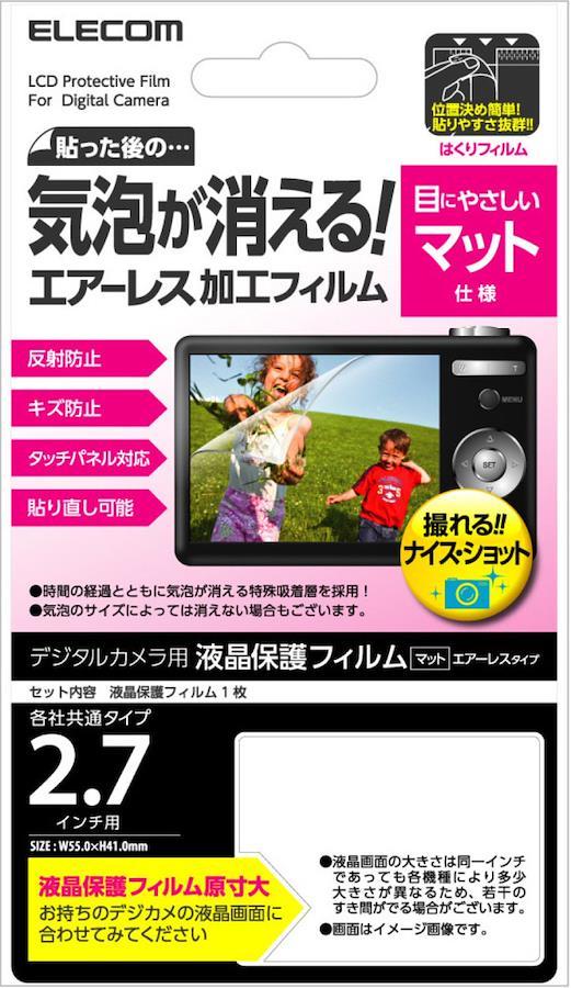 時間の経過とともに気泡が目立たなくなる特殊吸着層を採用しています。小さな気泡ができたときには、指などで押し出すことで気泡を抜くことができます。光の映り込みを抑え見やすい画面を実現する、反射防止仕様です。※デジタルカメラの仕様によっては対応しない場合がございます。ご購入前にディスプレイの寸法をご確認ください。