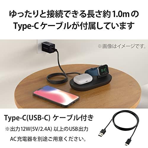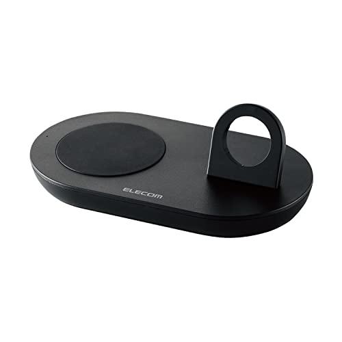 エレコム ワイヤレス充電器 置くだけ充電 Qi認証 2in1 Apple Watch 充電器はめ込み 5W [ スマホ(iPhone、Android)、イヤホン(AirPodsなど)、AppleWatch 対応] ブラック W-QA24BK