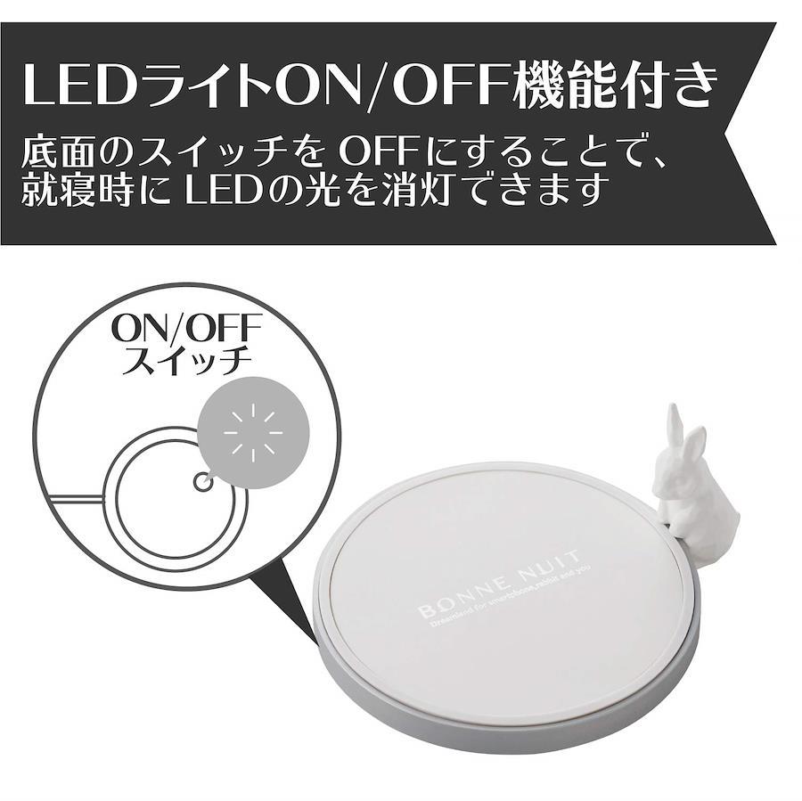 ■ 充電状況が確認できる動作確認LEDが付いています。本体底面にLEDライトON/OFFスイッチを装備し、就寝時などにはLEDを消灯させることができます。